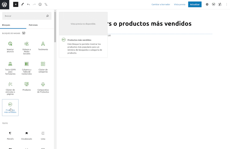Este bloque te permite crear listados de productos más vendidos de Amazon, eBay o AliExpress.